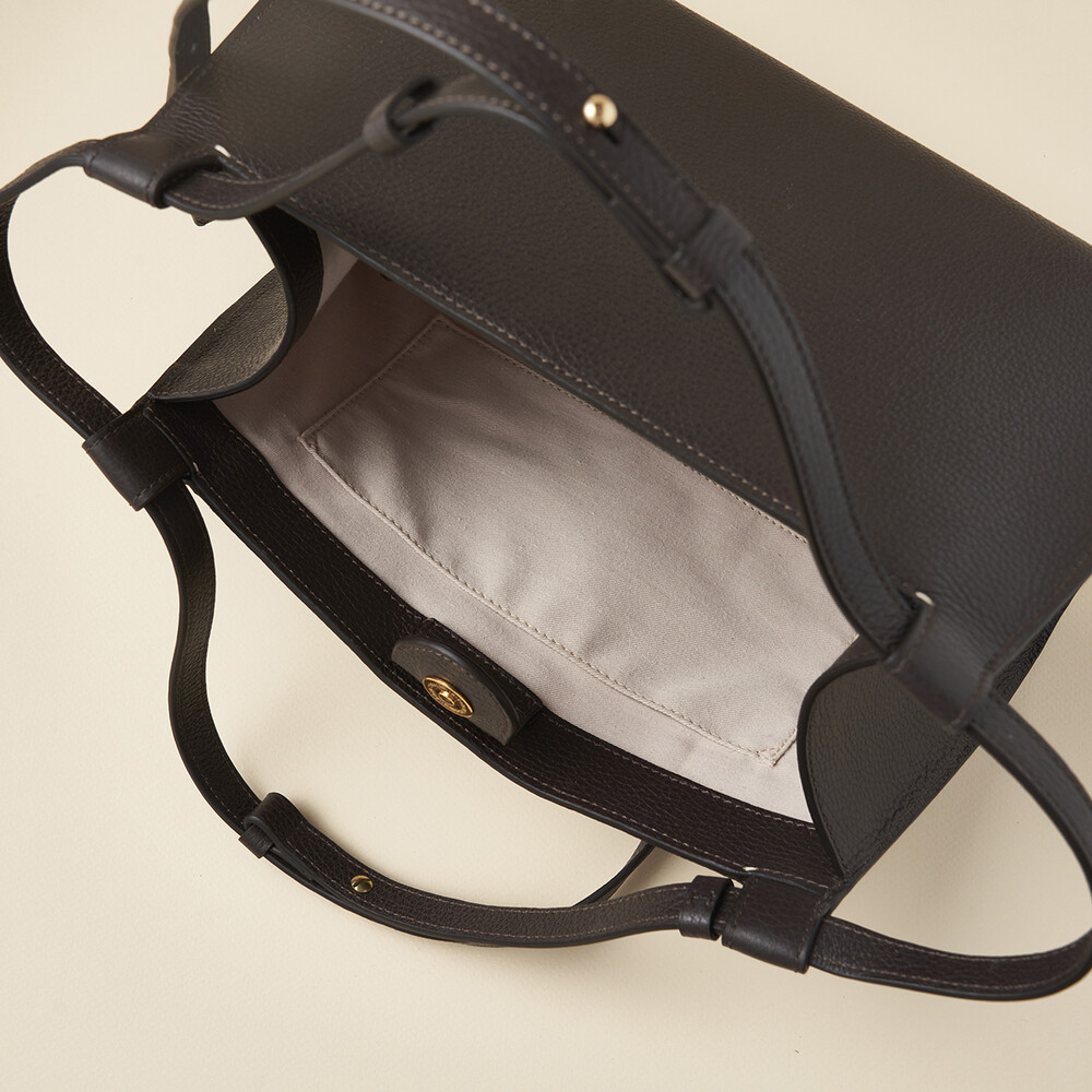 The convertible straps with button studs can be adjusted to the wearer’s desired length, allowing the bag to be transformed into a tote or shoulder bag.