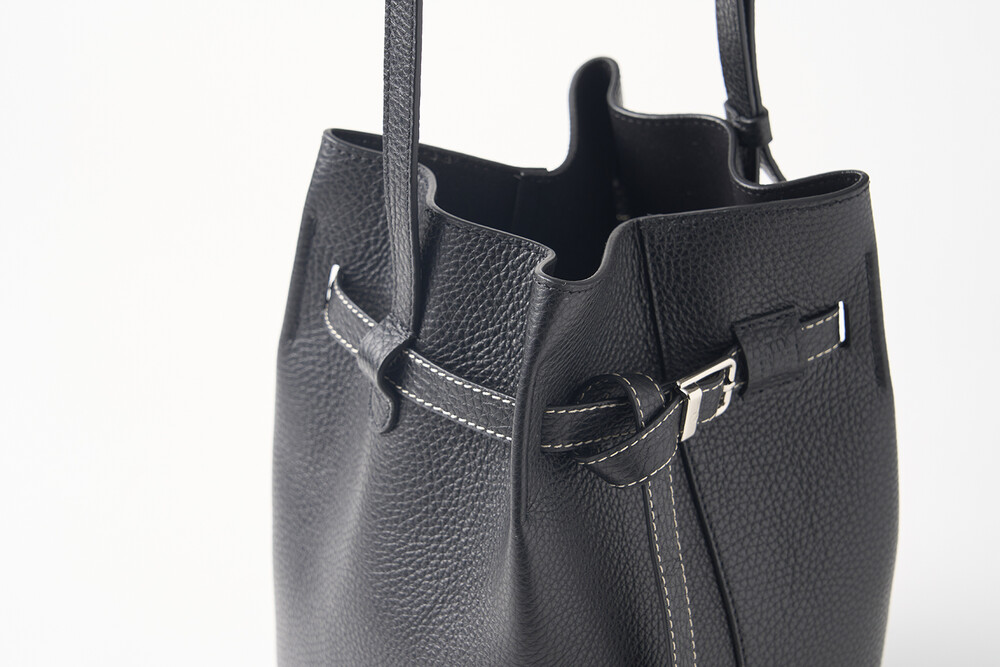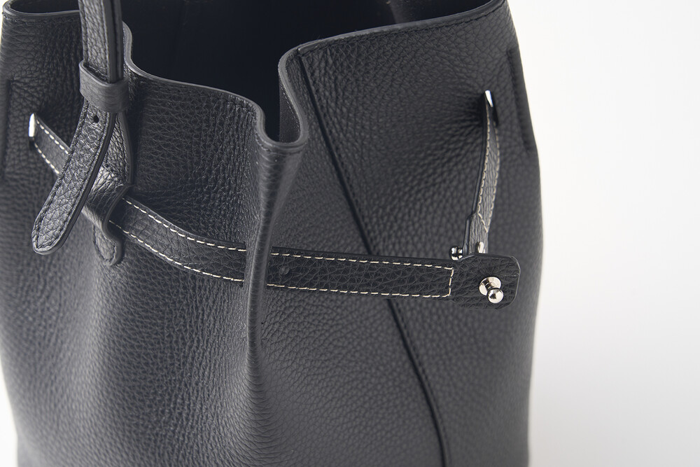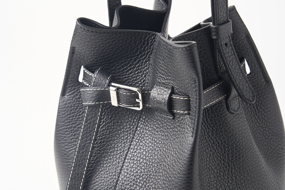 Crafted from Machinist’s signature Italian leather reinforced with high-quality lightweight stiffeners, the bucket bag has a supple and resilient body while its bottom is solid and sturdy without feeling excessive hardness.