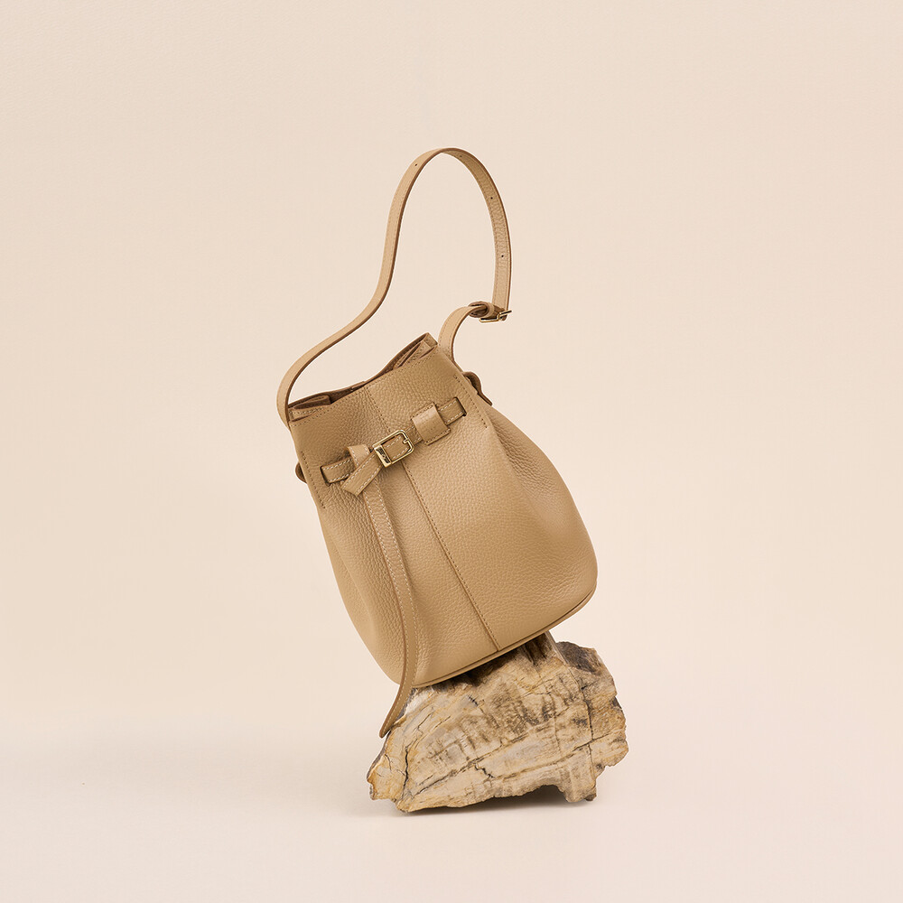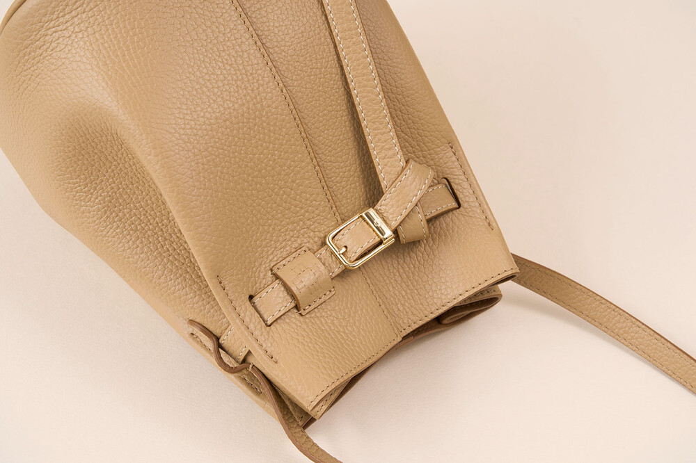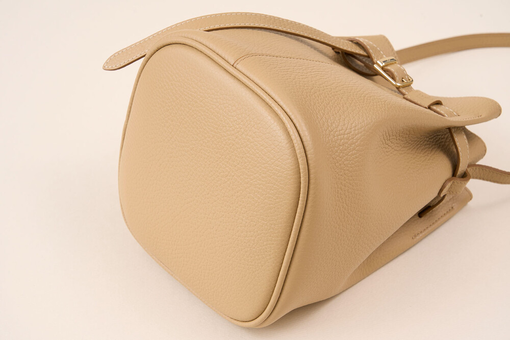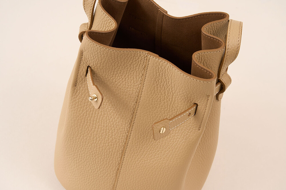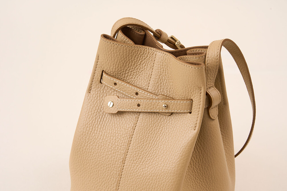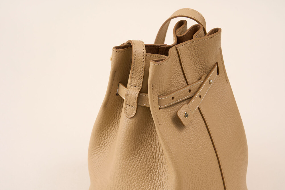 Crafted from Machinist’s signature Italian leather reinforced with high-quality lightweight stiffeners, the bucket bag has a supple and resilient body while its bottom is solid and sturdy without feeling excessive hardness.