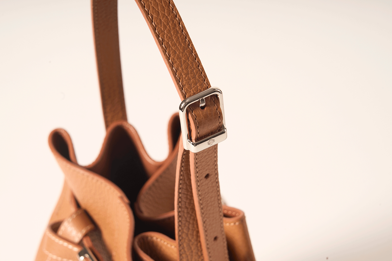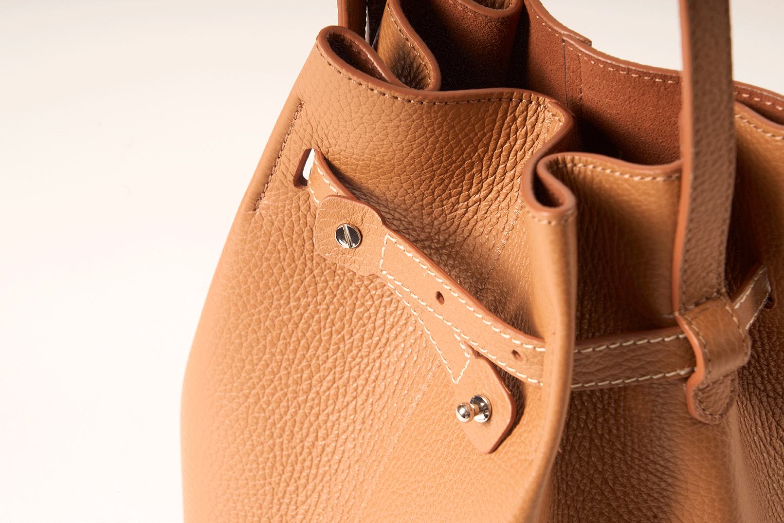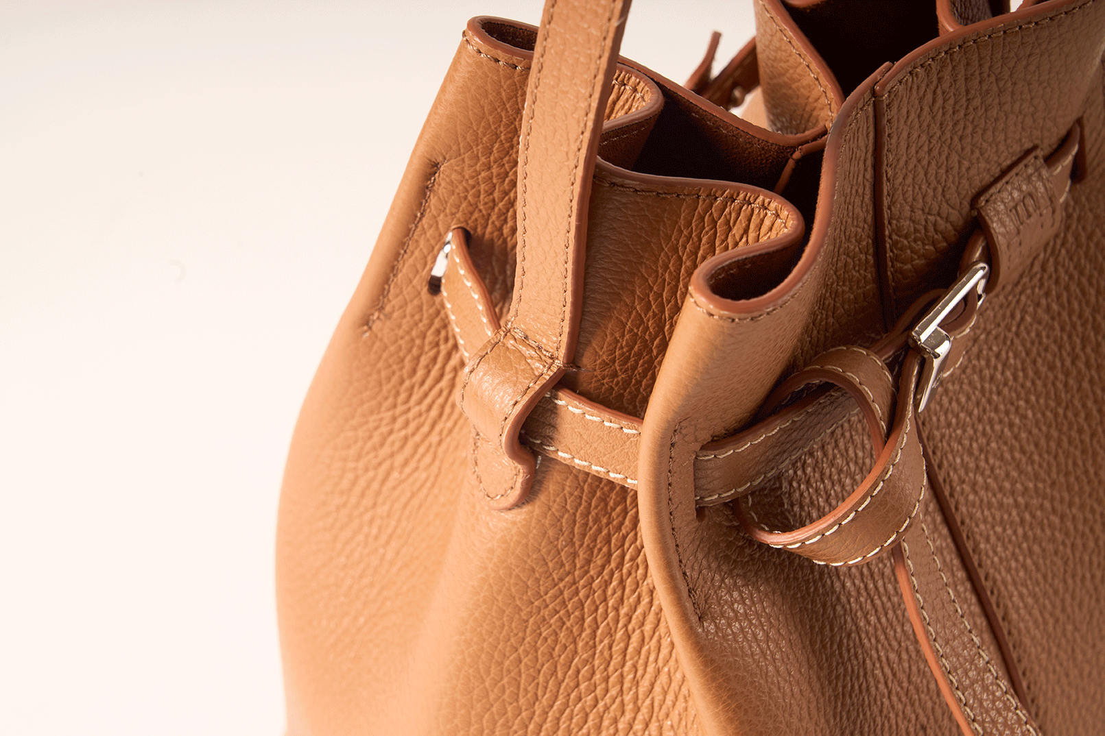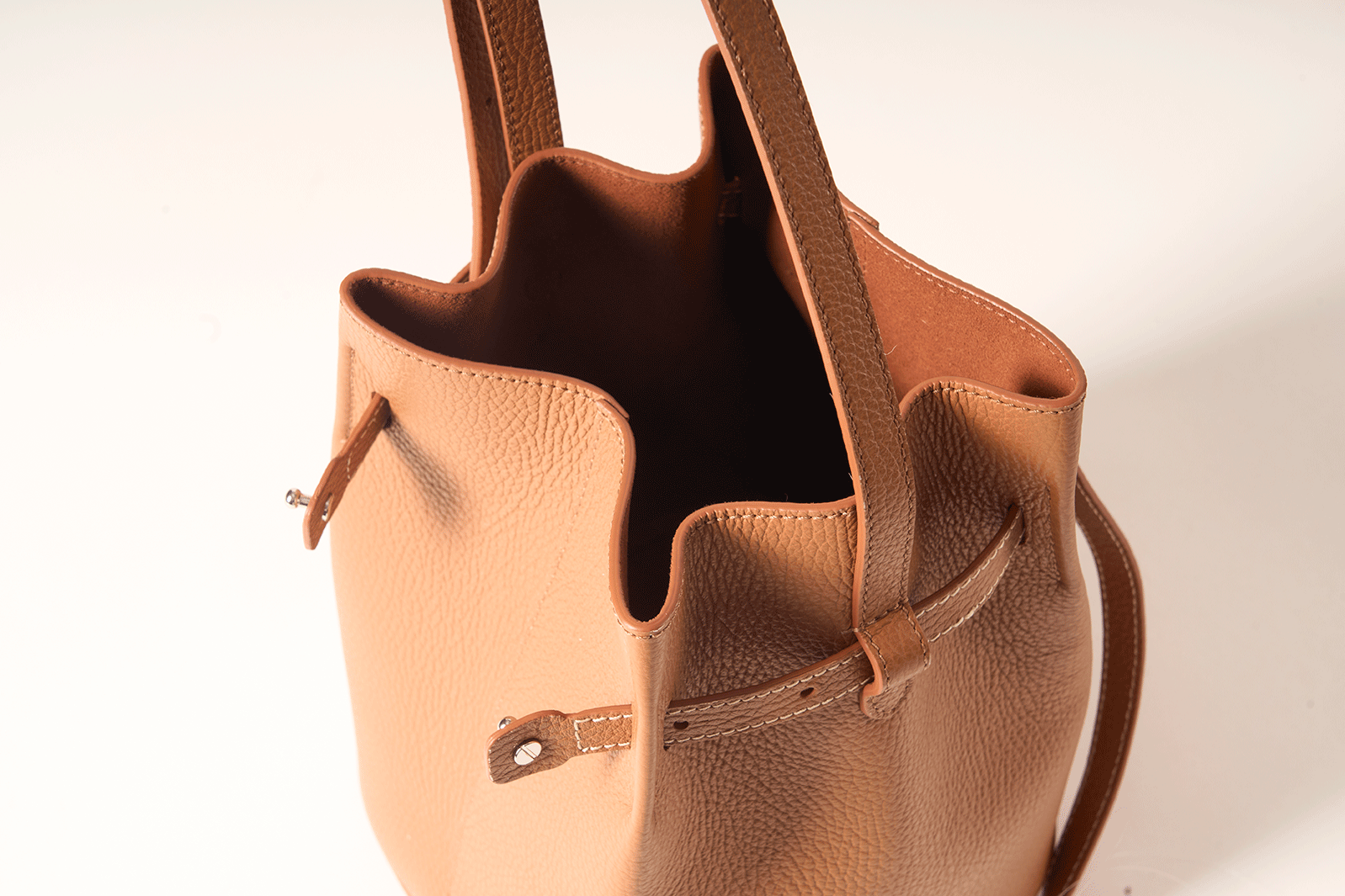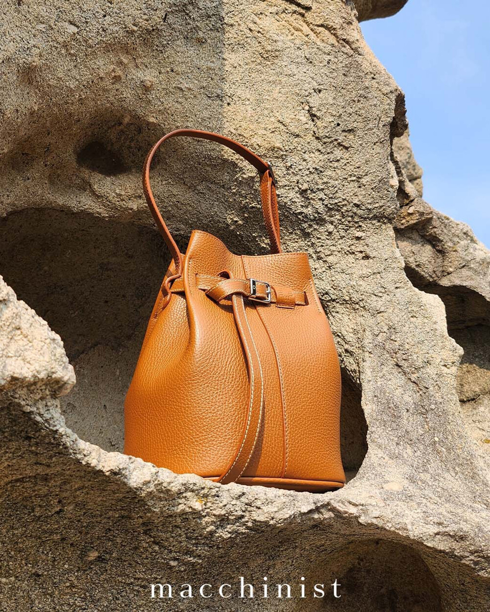 Crafted from Machinist’s signature Italian leather reinforced with high-quality lightweight stiffeners, the bucket bag has a supple and resilient body while its bottom is solid and sturdy without feeling excessive hardness.