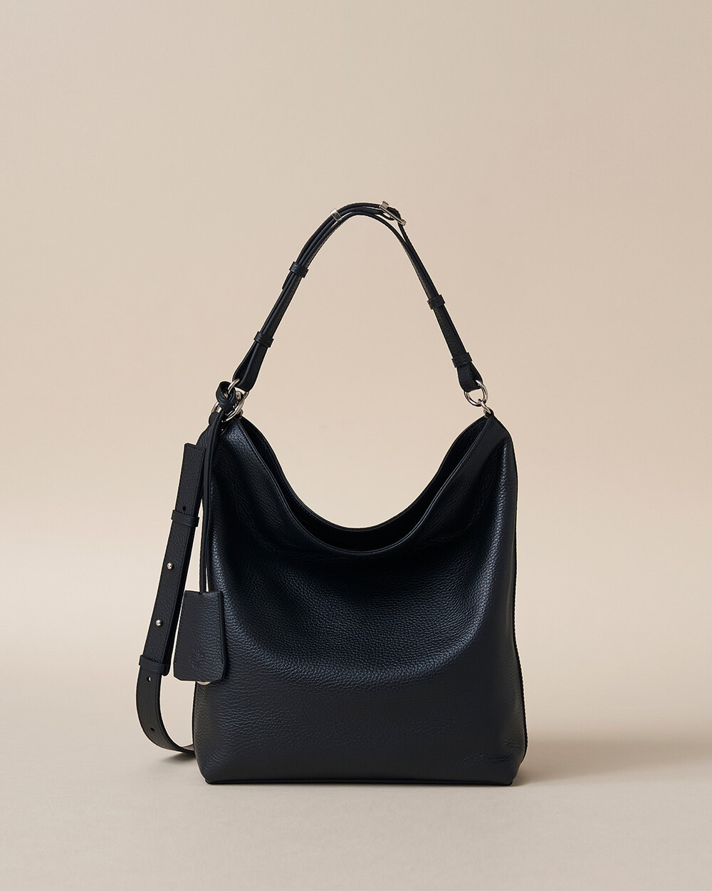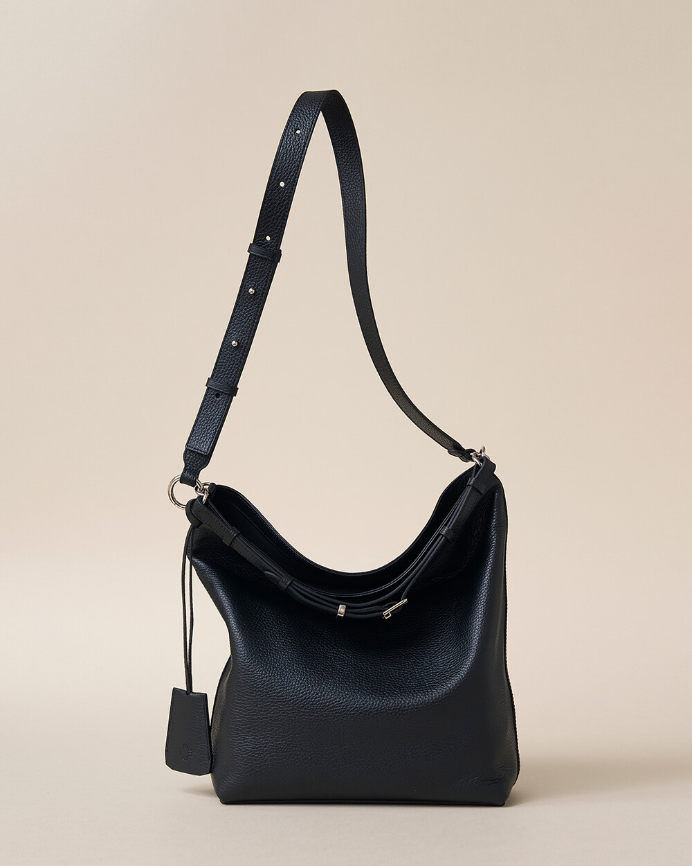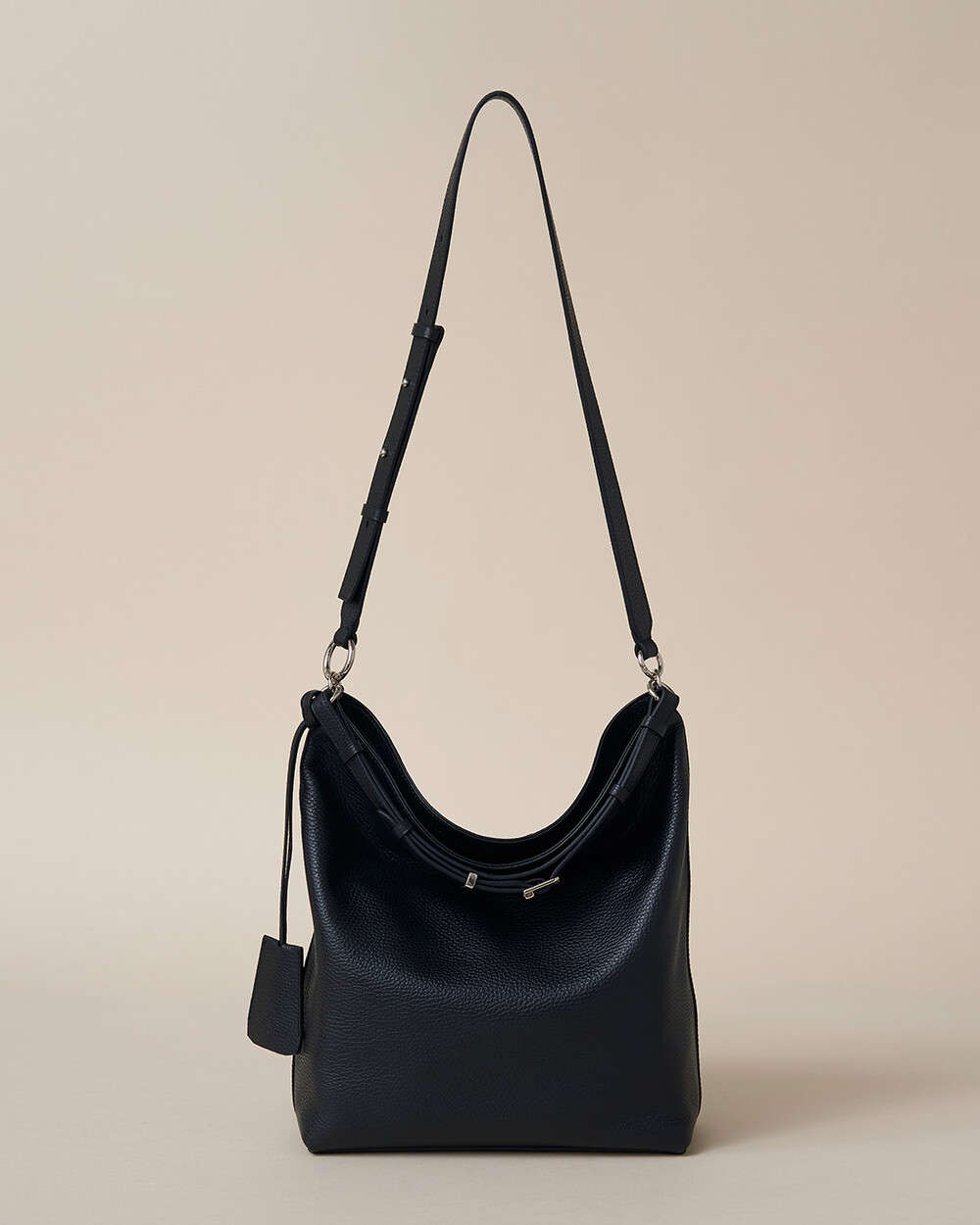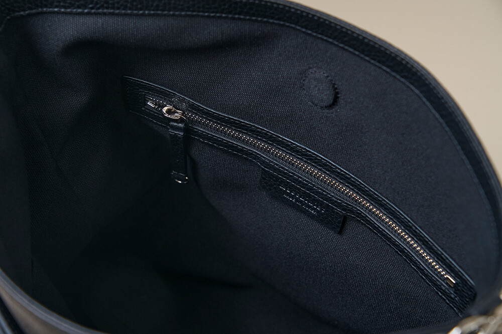 Defined by its sleek and minimalistic design, the gancio bag is crafted from supple Italiancowhide leather finished with high-quality stiffeners and cotton canvas lining. The elegantlines and slouchy posture of the body give this bag a soft and fluid look.