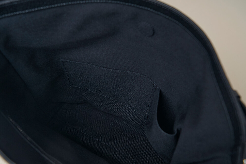 Inside the bag, there is a zippered pocket on one side and two smaller open pockets on theother side to keep small items easily accessible.