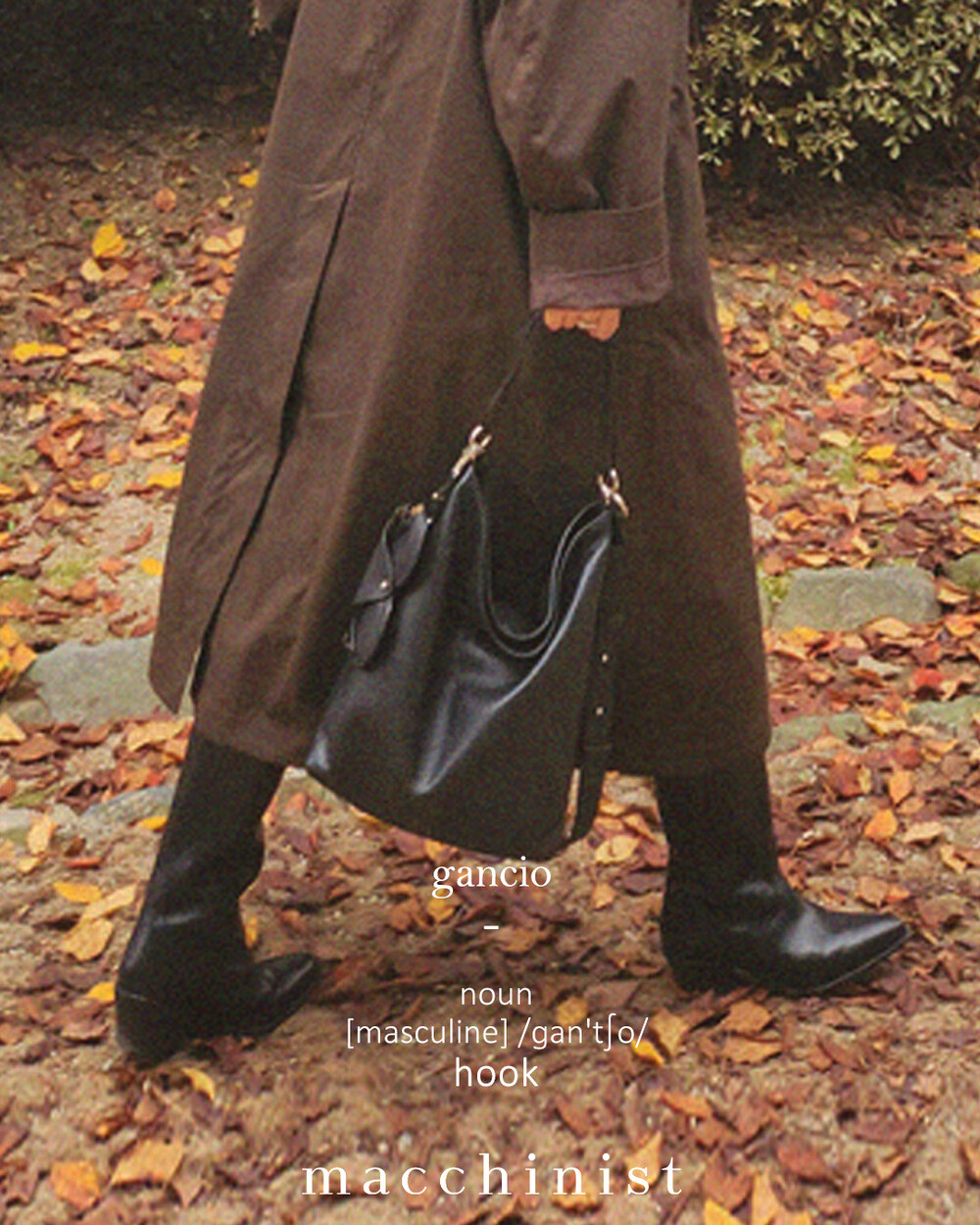 The name “gancio” means ring or hook in Italian. Featuring openable O-rings in silver-tonemetal on both ends of the buckled handle and straps, the bag can be freely styled dependingon the wearer’s preference by adjusting the length.